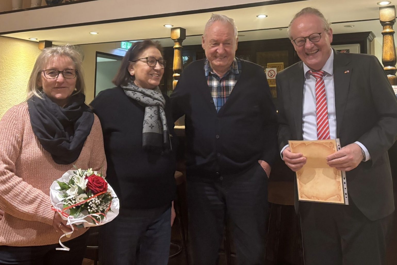 Bild: Ehrung anlässlich 25-jähriger Vereinsmitgliedschaft, von links nach rechts Sybille Montigny (Kassiererin), Andica Thoma, Georg Thoma und Bernd g. Krause 1. Vors. TSG Altenhain 1900 e.V.